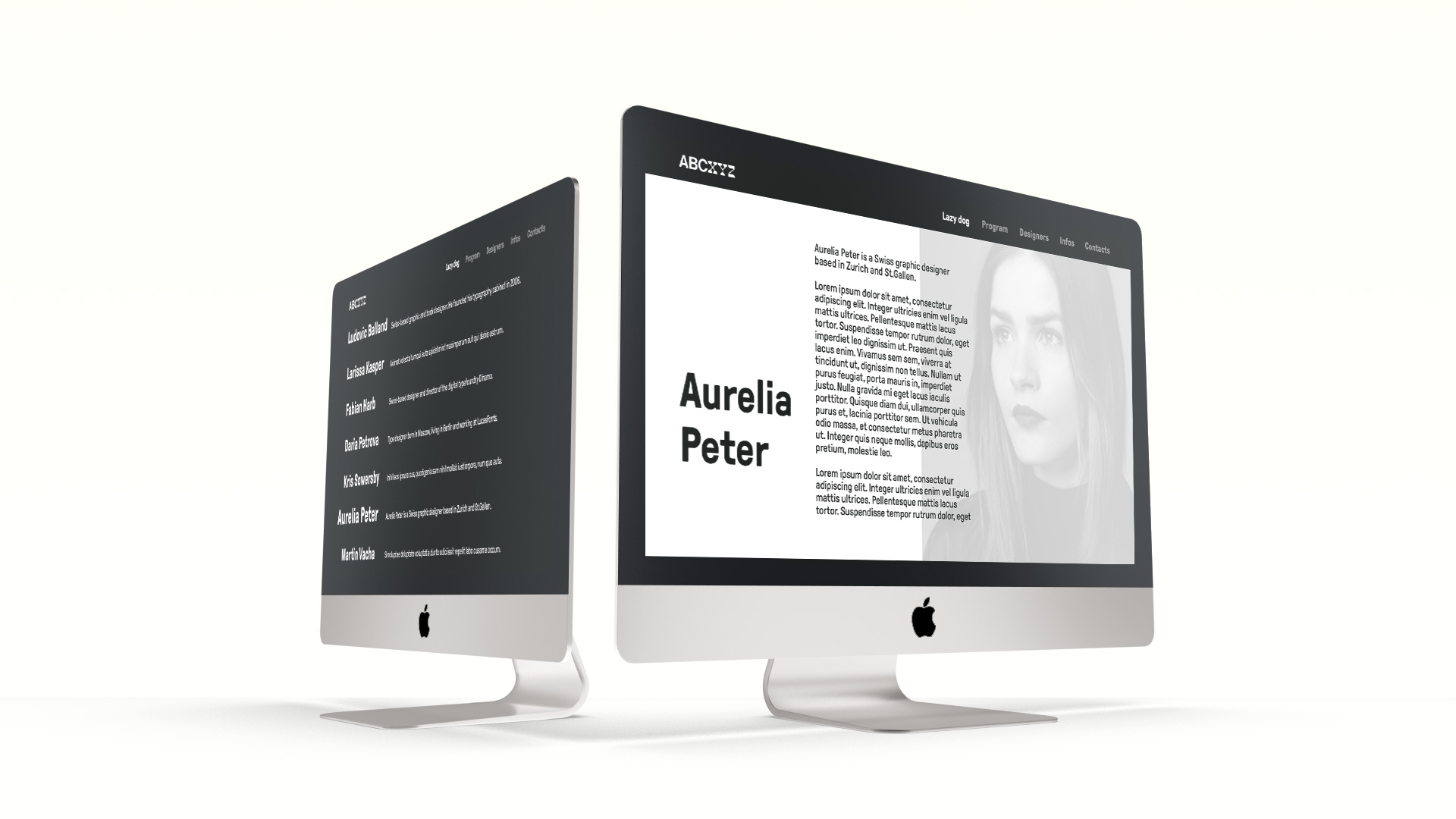 The designers section shows just a short introduction, but you can click on a name to open its tab. To keep all the information in a page, some contents are only visible with a pop-up overlay layout.