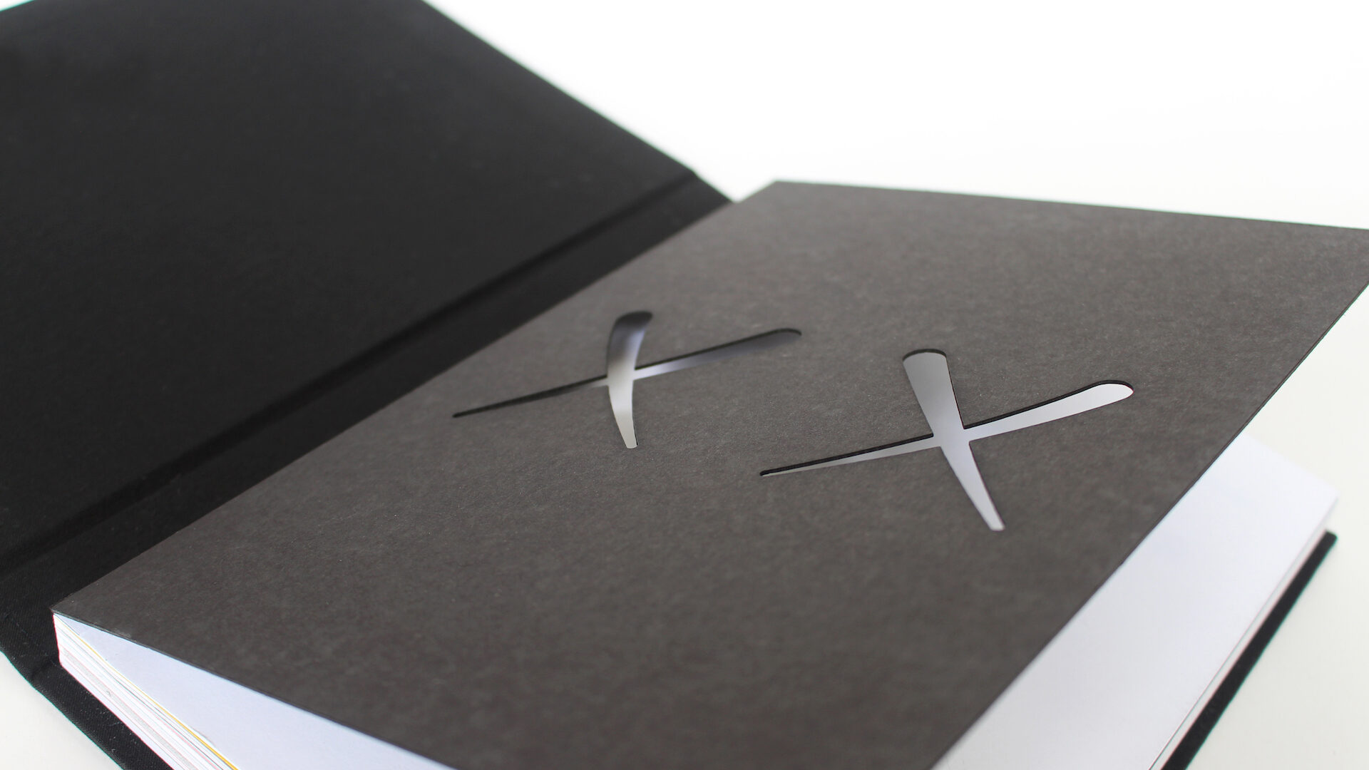 On the inside cover, a cut cardboard, to recall the title meaning.